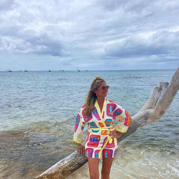 Sua estampa exclusiva traz cores vibrantes e um mood divertido, perfeito pra quem ama praticidade sem abrir mão de estilo.